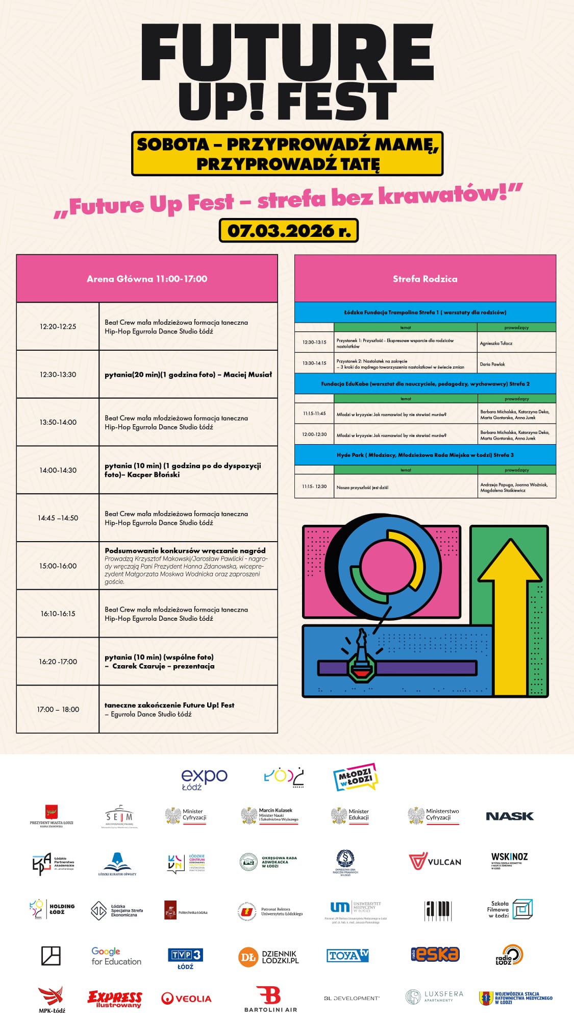 Organizatorami Future UP! Fest są Expo-Łódź, Wydział Edukacji UMŁ oraz Łódzkie Centrum Wydarzeń.