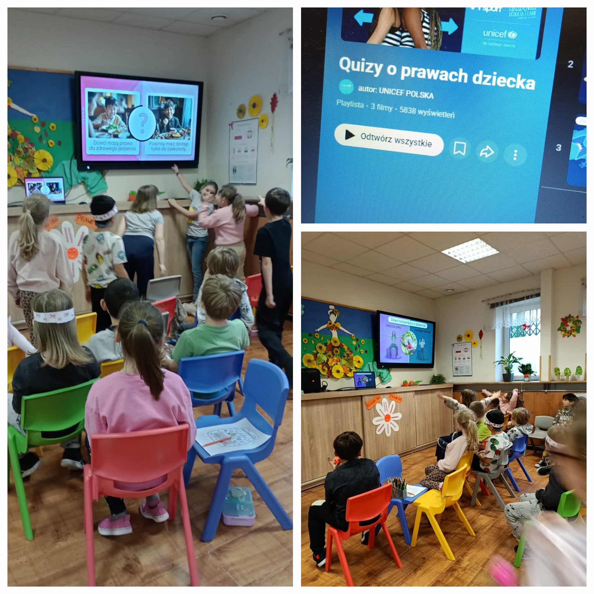 W świetlicy, z okazji Międzynarodowego Dnia Praw Dziecka, odbyły się tematyczne zajęcia pod hasłem „Każdy swoje prawa ma”. Dzieci uczestniczyły w warsztatach manualnych połączonych z pogadanką oraz oglądaniem filmów edukacyjnych UNICEF: „Pomóż Krokietowi poznać prawa dziecka” oraz „Czy wszystkie dzieci mają takie same prawa?” (quiz). Podczas zajęć uczniowie zdobyli nową wiedzę o prawach dziecka, a także wzięli udział w ciekawych aktywnościach ruchowych, które uatrakcyjniły całe wydarzenie.