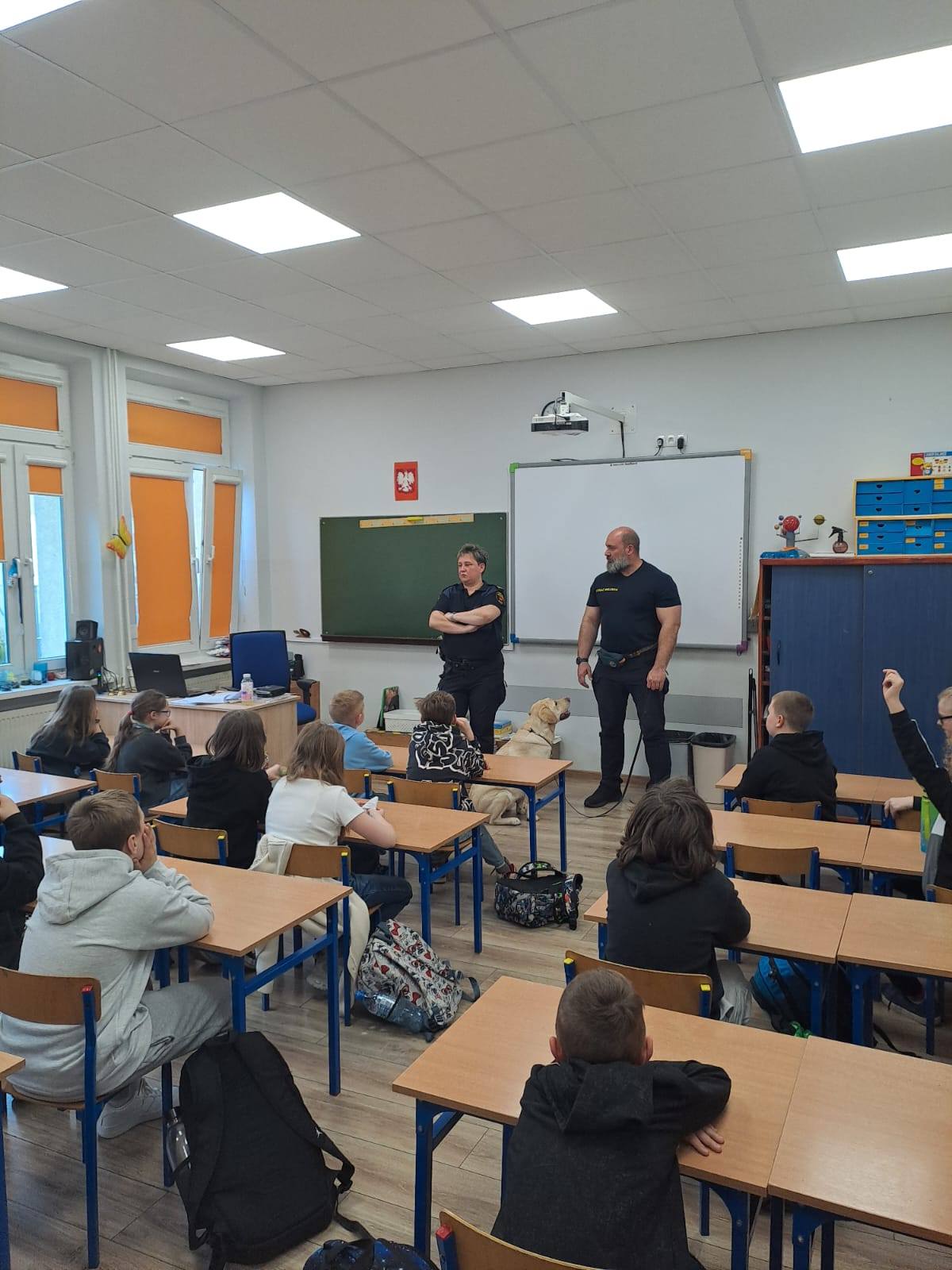 Klasa 4c wzięła udział w lekcji poprowadzonej przez przedstawicieli Straży Miejskiej wraz z psem o imieniu Maks. Dzieci dowiedziały się, jakie zagrożenia czekają na nie ze strony dzikich zwierząt, często wchodzących na obszary zamieszkałe przez ludzi, a także jak zachowywać się w sytuacji zagrożenia atakiem ze strony psów. Zajęcia będą również prowadzone w pozostałych klasach 1-4.