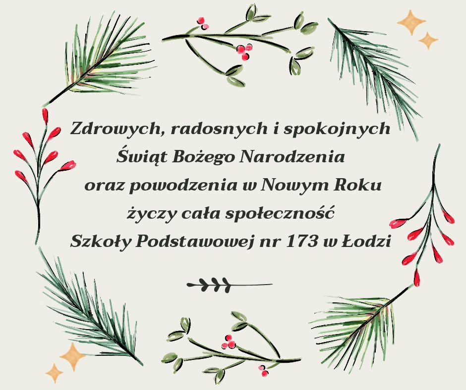 Z okazji zbliżających się Świąt Bożego Narodzenia życzę całej społeczności szkolnej pięknych świąt, spędzonych w rodzinnej atmosferze. Niechże wszechobecny spokój i radość zapanują w Państwa domach. Pozdrawiam serdecznie. Dyrektor szkoły Bożena Biniek
