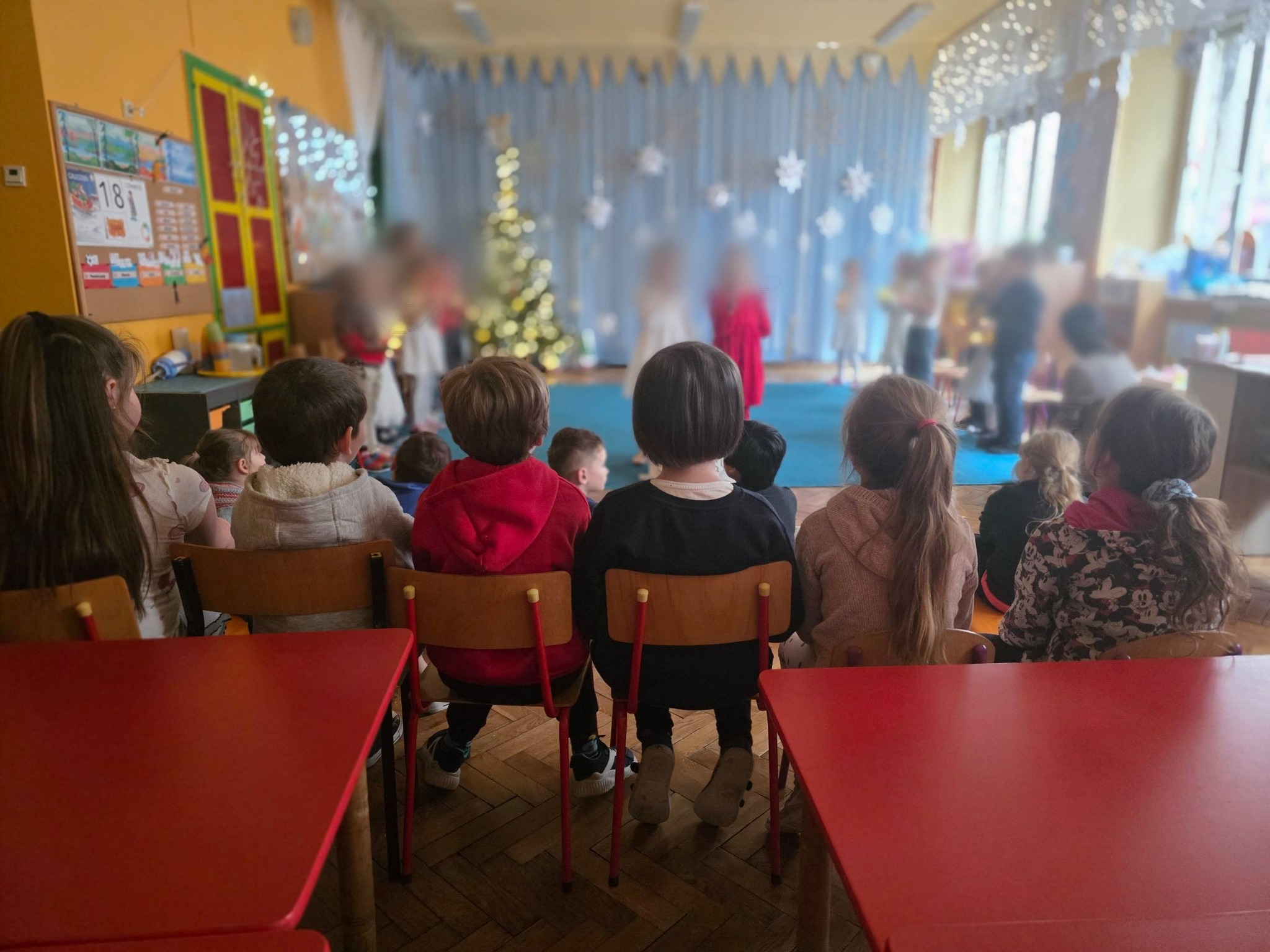 Uczniowie z klasy 1c odwiedzili przedszkole, gdzie uczestniczyli w świątecznym przedstawieniu z okazji Bożego Narodzenia. Z dużym zainteresowaniem oglądali przygotowany przez przedszkolaków występ, pełen kolęd i świątecznej atmosfery. Po przedstawieniu dzieci wspólnie spędziły czas, wykonując piękne ozdoby świąteczne. Spotkanie było okazją do integracji, rozwijania kreatywności oraz wprowadziło wszystkich w radosny, bożonarodzeniowy nastrój.