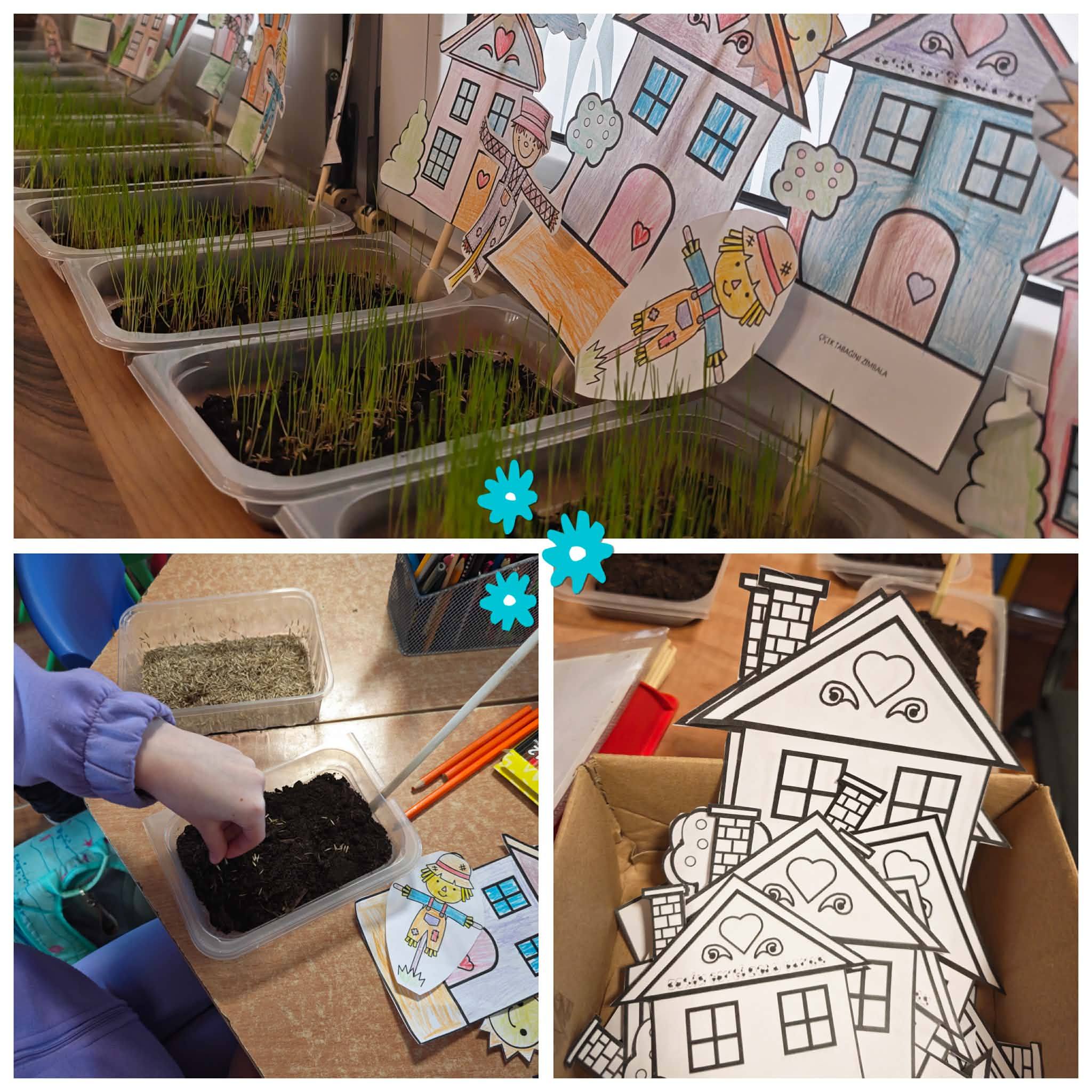 W świetlicy na dobre zagościła wiosna! Wcieliliśmy się w prawdziwych ogrodników. Każdy przygotował swój własny kawałek zieleni – wysialiśmy trawę, pokolorowaliśmy domki i wysłuchaliśmy materiału o tym, czego rośliny potrzebują do wzrostu. Teraz z niecierpliwością czekamy na pierwsze efekty naszego siewu!